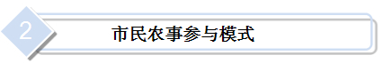 ▲可由農(nóng)民提供土地,讓市民參與耕作的園地。一般是將位于近郊的農(nóng)地集中規(guī)劃為若干小區(qū),分別出租給城市居民,用以種植花草、蔬菜、果樹或經(jīng)營家庭農(nóng)藝,其主要目的是讓市民體驗(yàn)農(nóng)業(yè)生產(chǎn)過程,享受耕作樂趣。市民農(nóng)園以休閑體驗(yàn)為主,多數(shù)租用者只利用節(jié)假日到農(nóng)園作業(yè),平時(shí)交由農(nóng)地提供者代管。根據(jù)使用對(duì)象的不同,該模式分為家庭農(nóng)園、兒童農(nóng)園、銀發(fā)農(nóng)園3種類型。